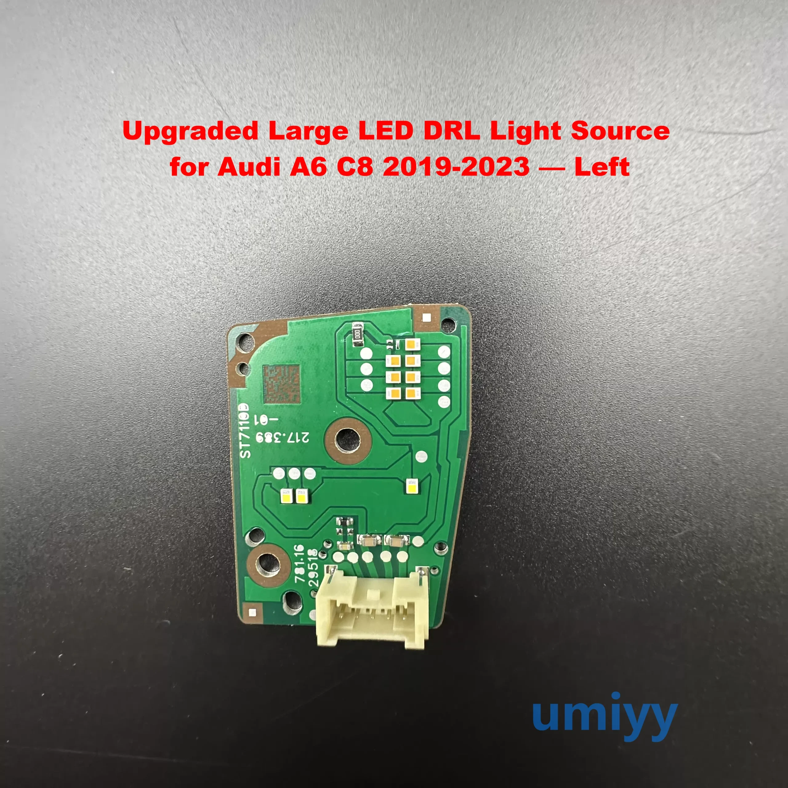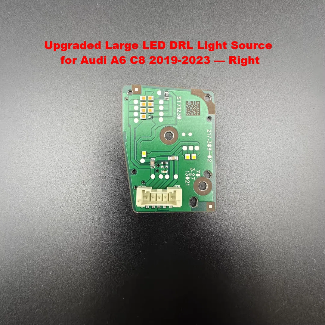 Upgraded LED daytime running light (DRL) source modules, compatible with Audi A6 C8 2019-2023. Features copper-based circuit boards for improved heat dissipation, no programming required, direct plug-and-play installation. Available in large and small versions for left/right sides.